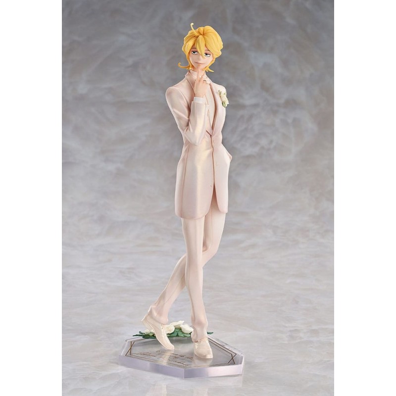 Asumiko Nakamura's gentle and beautiful designs have been faithfully brought to life in figure form. The airy paintwork gives the figure an ephemeral appearance, especially when displayed with Licht Sajo: Wedding Ver., creating a stunning display of the pair sharing a quiet moment together. Elegant pearlescent hues have been applied throughout the figure, providing a subtle yet radiant appearance. The base features Hikaru Kusakabe's name and a wedding invitation in gold, with a white rose for a delicate yet romantic touch. Be sure to add this beautiful figure to your collection.