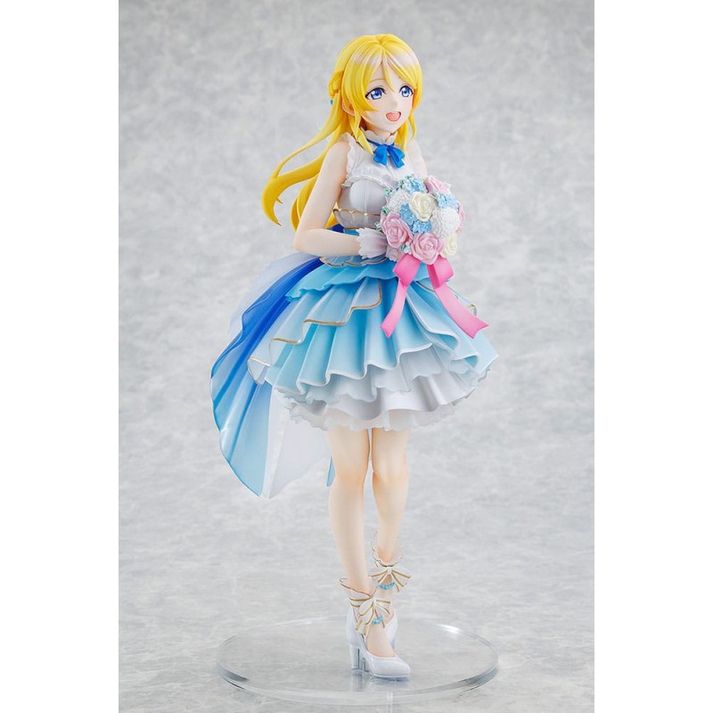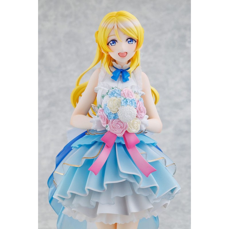 Eli Ayase from Love Live! becomes a 1/7 scale figure based on LoveLive! Days 5th anniversary illustration. Features translucent dress parts and delicate paintwork. Can be displayed with Dia Kurosawa and Kozue Otomune.
