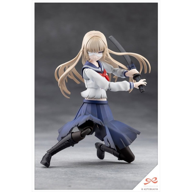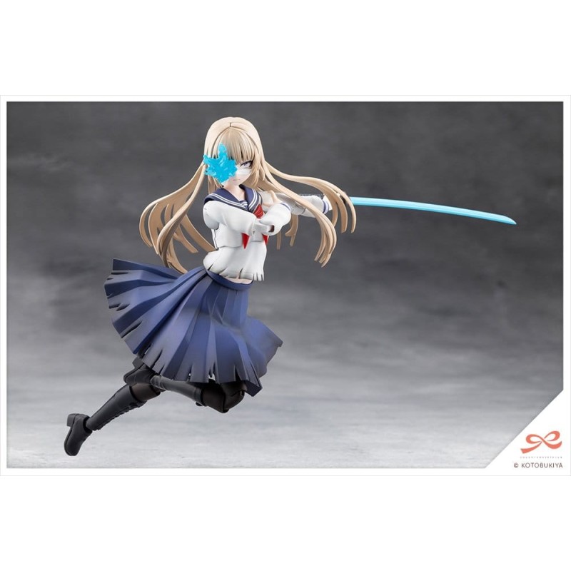 Action Pose Joints: As this character is an actress of a tokusatsu show heroine, the kit features a specially designed joint structure that allows for more expressive, dynamic poses. This makes it slightly different from previously released SOUSAISHOJOTEIEN models and may require a little more experience to assemble. Using joints and features such as extendable shoulders, a chest and stomach that can twist in all directions, an adjustable skirt, and double-jointed elbows and knees, dynamic action poses can be created, like standing firm with a sword gripped with both hands, unsheathing the sword, and kneeling.