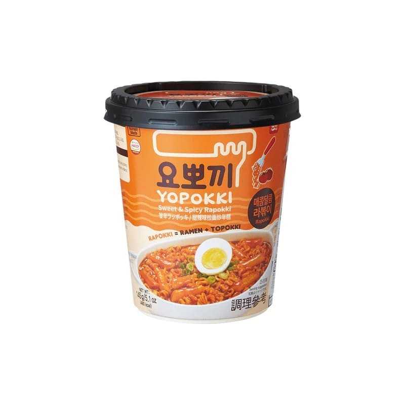 Ingredients:Rice Cake {Rice, Refined Salt, Grain Alcohol, Chicory Dietary Fiber, Rice Bran, Citric acid (E330))} Noodle {WHEAT Flour, Palm Oil, Modified Potato Starch, Refined Salt, Rice Bran Oil, Brewed SOY Sauce, Acidity Regulator(E501i), guar gum(E412), Tocopherol(E307), Carotene(E160a), Citric acid (E330), Green Tea Flavored Oil} Seasoning {Sugar, Red Pepper Powder, Complex Seasoning [Refined Salt, Sodium L-Glutamate (Flavor Enhancer)(E621), Sugar, Glucose, Corn Starch], Modified Potato Starch, Powdered Red Pepper Paste [Red Pepper Paste (WHEAT Flour, Red Pepper Powder, SOYBEAN Paste), Maltodextrin, Refined Salt], L-Sodium Glutamate(E621), SOY Sauce(Skimmed Soy, Dextrin, Salt), Broth (Onion, Dextrin, Yeast, Salt, Glucose, Shortening, Caramel Color(E150)), guar gum(E412), Garlic Powder, Onion Powder, Refined Salt, Tricalcium Phosphate(E341), Paprika Extract Color, Enzymatically Modified Stevia, 5'-Ribonucleotide Disodium(E635), Oleoresin Capsicum, Dried Green Onion}.