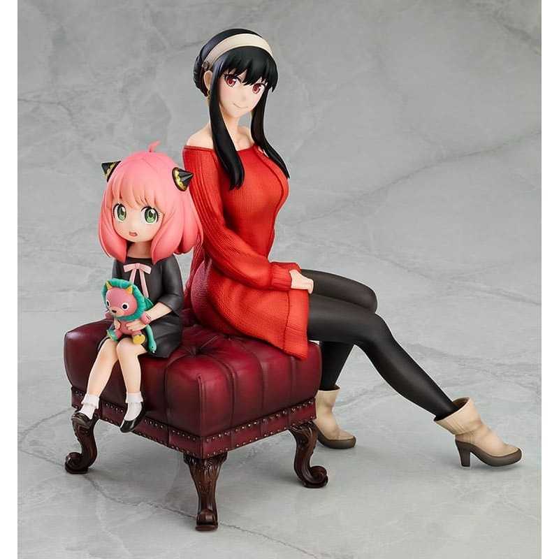 Dalla serie anime "SPY x FAMILY" arriva una figure in scala 1/7 di Anya e Yor nei loro abiti casual! La figure presenta Anya e Yor sedute su un pouf in pose originali. Dettagli raffinati, come il peluche Chimera tra le braccia di Anya e la trama a maglia del vestito di Yor, sono stati meticolosamente ricreati..
