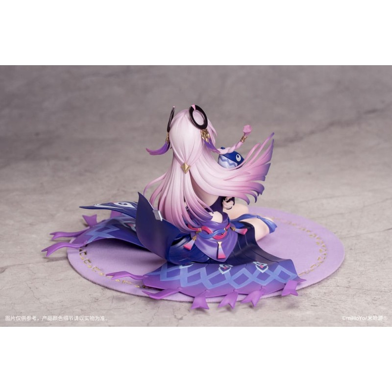 Questa figure cattura nei minimi dettagli l'espressione tsundere di Citlali. Seduta su un tappeto viola rotondo, Citlali culla dolcemente il suo amato Itzpapa tra le braccia. I suoi capelli fluttuano come nuvole pastello, mentre la sua gonna si dispiega come petali, come accarezzata da una brezza leggera.
