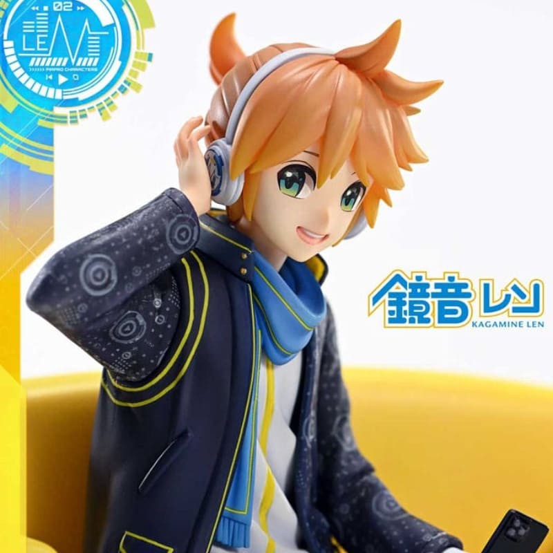 Sdraiato su un divano giallo, completamente immerso nel suo amore per la musica, la posa rilassata di Len è fedelmente catturata da un'illustrazione ispirata al cyberpunk del rinomato artista.